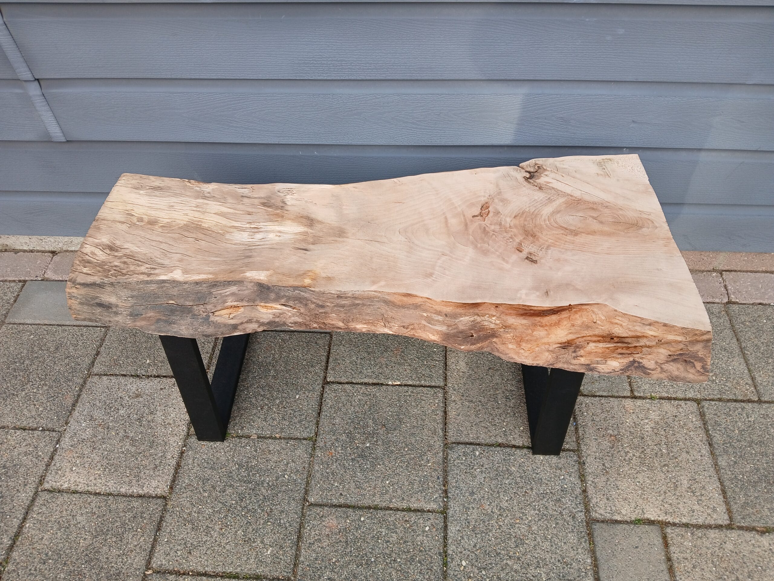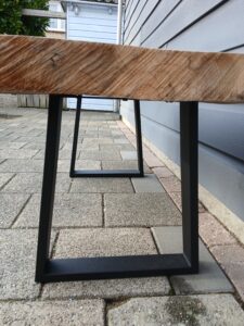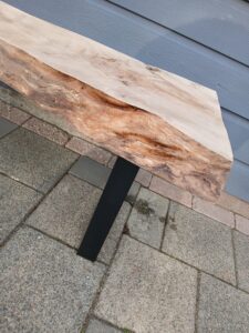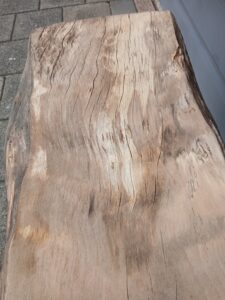 Een super gaaf robuust bankje / tafeltje van een boomstamplank.