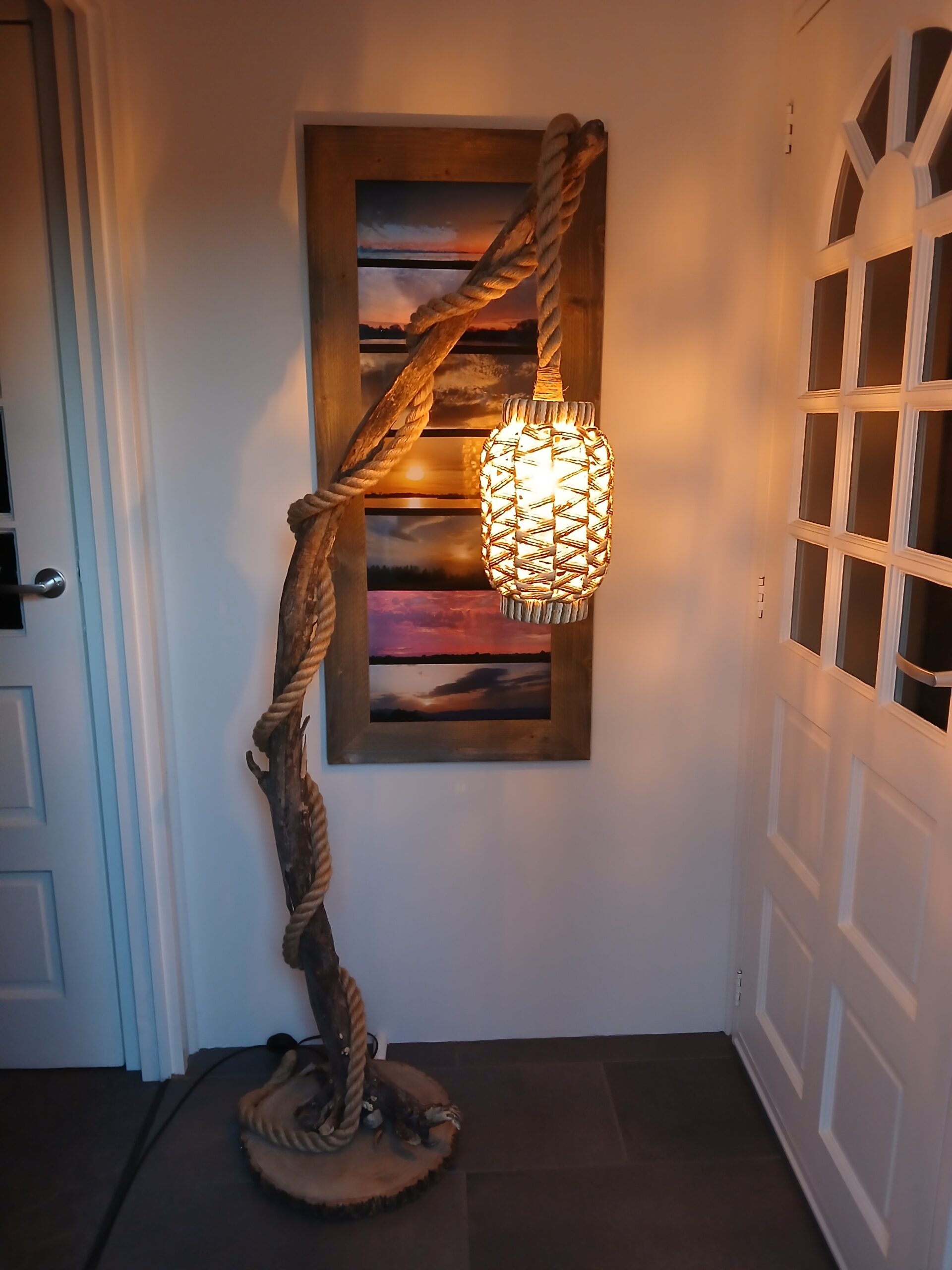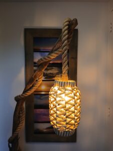 Het touwkapje zorgt voor een sfeervolle verlichting.